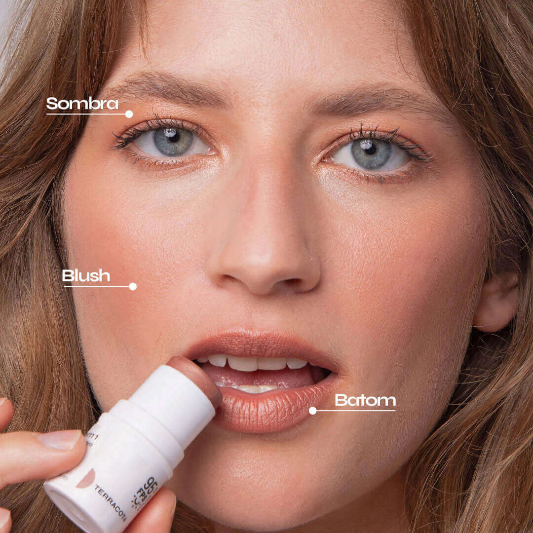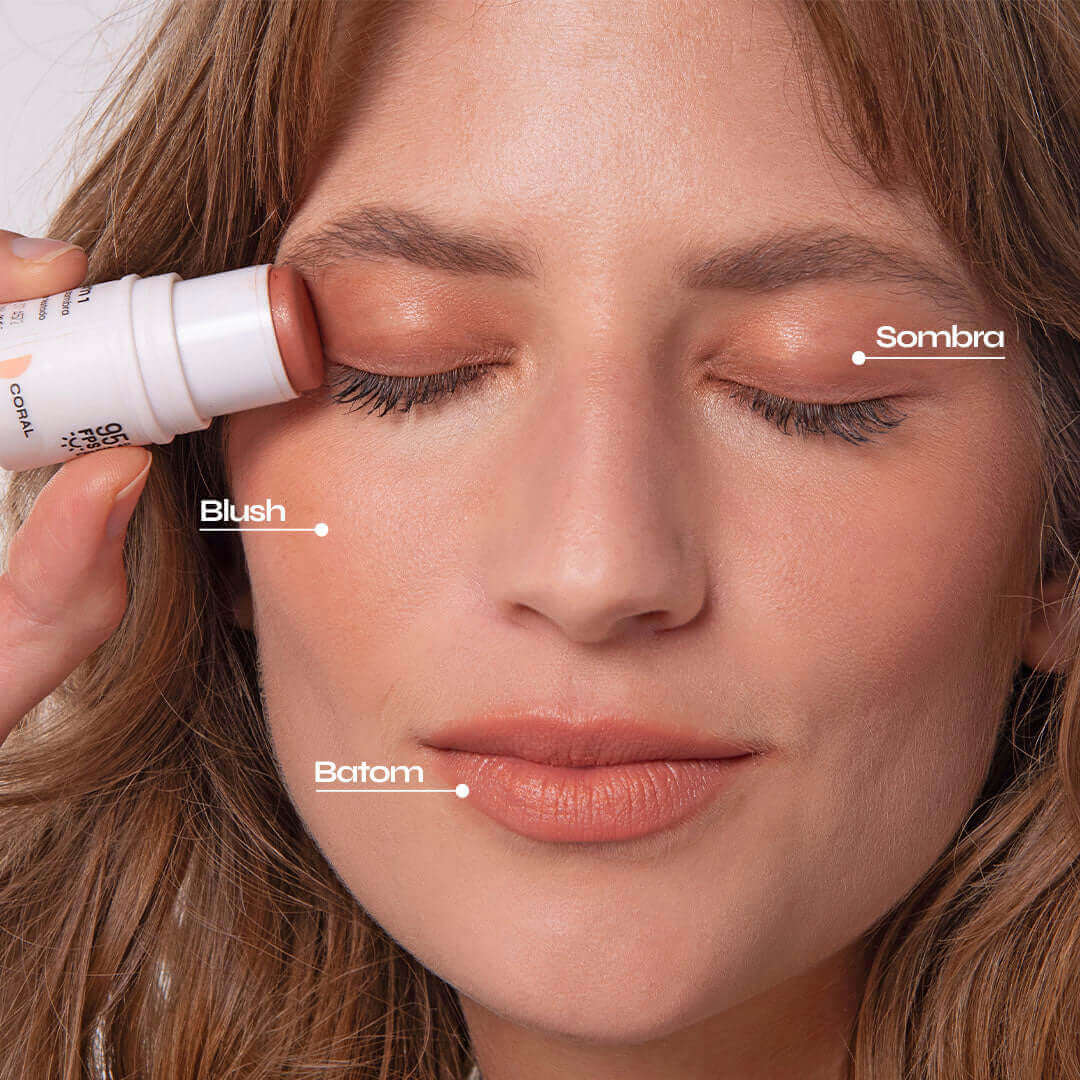 Nosso Ollie em bastão 3 em 1 FPS 95, é super versátil e pode ser usado como blush, batom e sombra. É perfeito pra todos os tipos de pele, até mesmo as oleosas e acneicas. Além de promover mais cor nos seus dias, a Vitamina C e E na fórmula têm ação hidratante e antioxidante e junto com o ácido hialurônico e FPS 95 tratam e protegem sua pele.